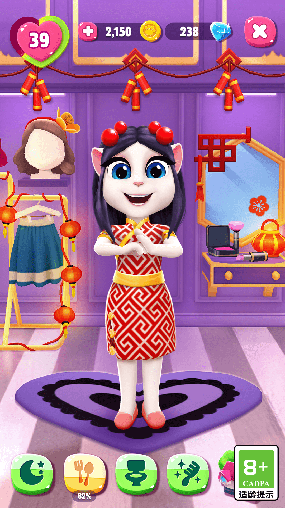 时尚爱好者注意啦:安吉拉有一个专为时尚而设的迷人房间!漂亮的衣柜里满是服装和配饰,巨大的化妆台让你可以畅玩化妆游戏,迷你发廊让你可以尝试各种新发型。帮助安吉拉设计发型,用时尚和美妆来展现自我。